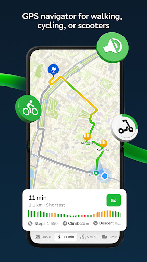 Tuyến đường đi bộ. Dẫn đường cho người đi bộ mở đường đến bất cứ nơi nào bạn có thể đi bộ. Hoạt động ở chế độ nền, hỗ trợ hướng dẫn bằng giọng nói.